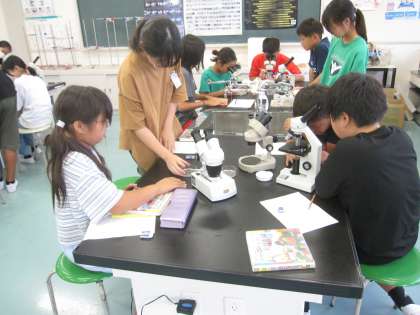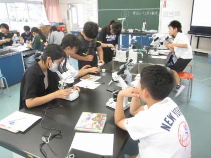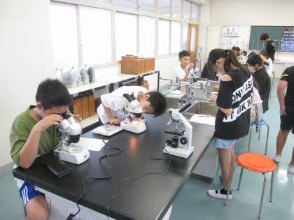 水洗いしてきれいにした火山灰を双眼実体顕微鏡で観察しました。