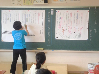 9月4日(水)3年生 国語 公開日 2024/09/04 更新日 2024/09/04 できごと 次の授業でも生かせるように、プリントした大きな紙に書き込んでまとめます。チャレンジウィークの中学生も実習しています。