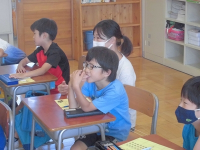 交流学級で頑張っている様子です。担任や助手さんが支援します。