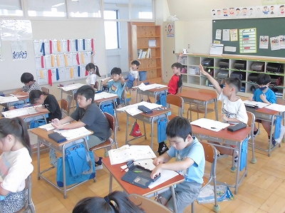 問題が仕上がると、挙手して先生か中学生が来てくれるのを待ちます。