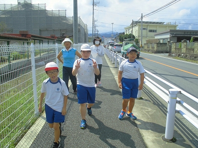 横断歩道の渡り方などを含め、校外でいろいろなスキルを高めます。
