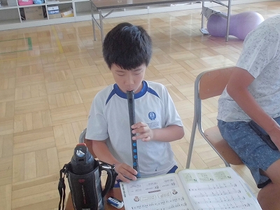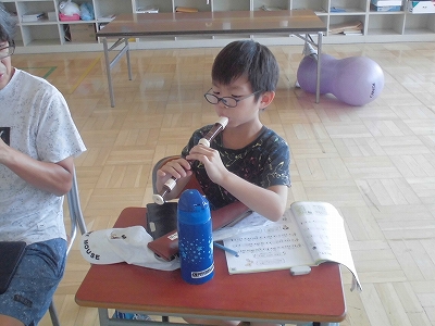 交流学級での音楽に向け、リコーダーをちょっぴり練習しておきます。