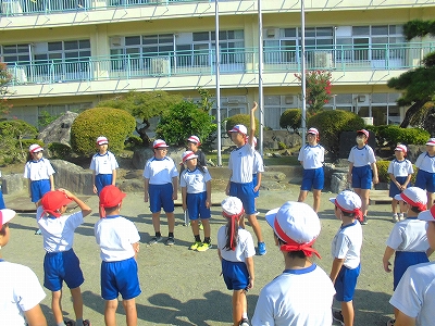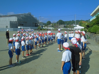朝の体育集会では、団ごとに分かれて、応援の練習をしました。