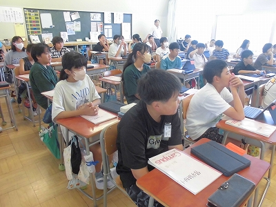 修学旅行について、行程など確認します。日野小の6年生も一緒です。