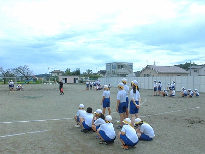 昨晩の雨の影響で校庭が悪条件なため、入場や並び方の練習をします。