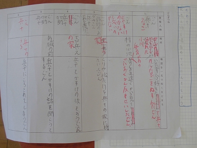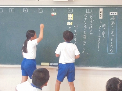 「ごんぎつね」を場面ごとに一文にまとめた文章を発表していきます。