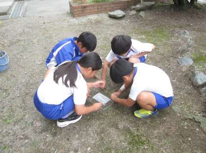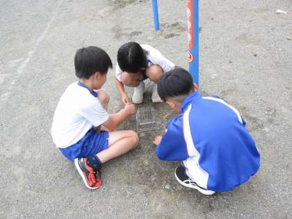 9月24日(火)4年生 理科 その1 公開日 2024/09/24 更新日 2024/09/24 できごと しめった地面から、水が空気中に出ていくか調べました。 しばらくすると、プラスチックケースの内側に水てきがついたことから、水は空気中に出て行くことがわかりました。