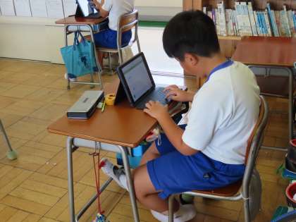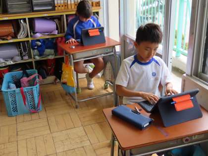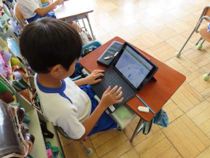 ローマ字を覚えたので、タブレットでタイピング練習をしています。正しく打てたかな。