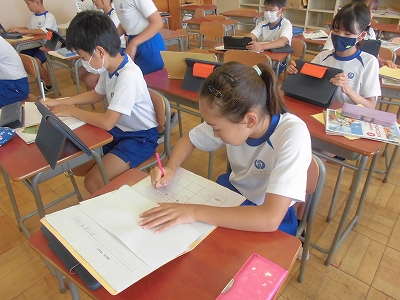 振り返りの時間でした。各自がワークシートにまとめていきます。