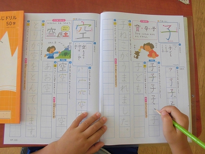 「一〜十」の漢字の次に「子」と「空」の漢字を学習します。