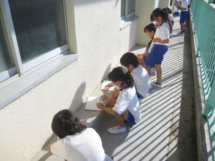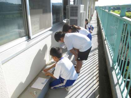 かげの動き方と、太陽のいちのかわり方を調べました。