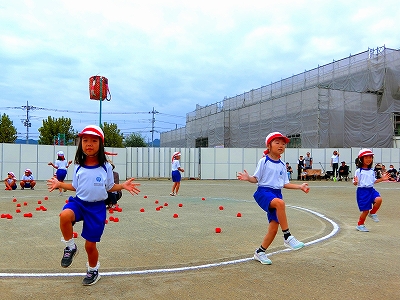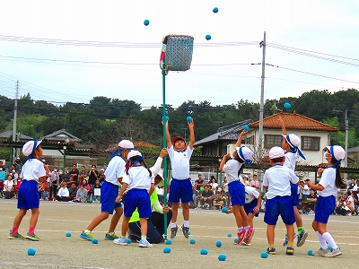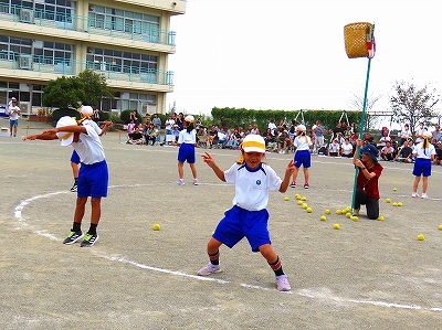1、2年生による、かわいい「ダンシング玉入れ」です。
