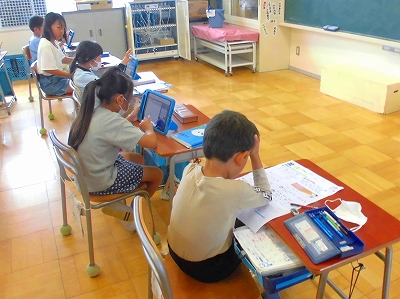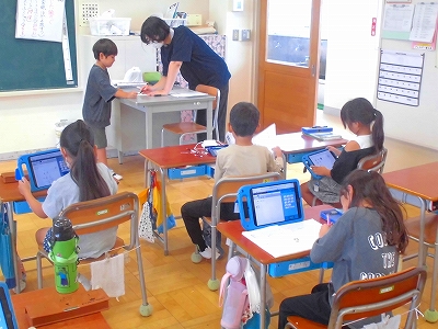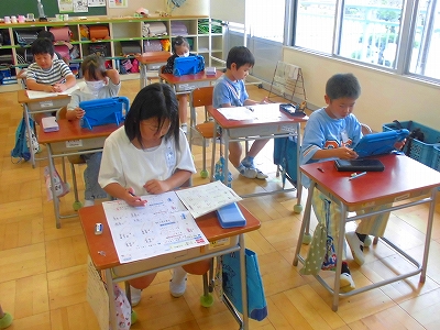 テスト直しでOKがでると、各自タブレットで復習問題に取り組みます。