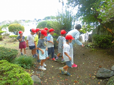 秋の虫探しに、学校の敷地内を庭などを中心に散策しました。