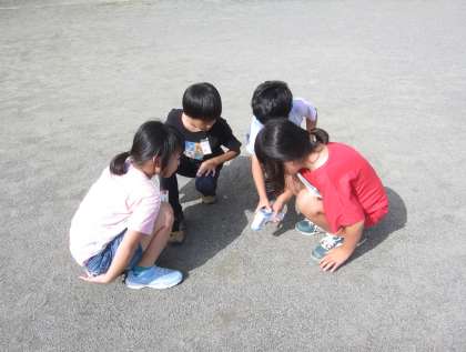 日なたの地面と日かげの地面の温度を調べました。