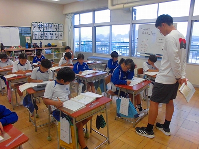 テスト前の復習ですが、自分で考えた復習方法でとても集中しています。