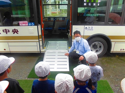 路線バスの設備、乗り方、降り方をていねいに説明していただきました。