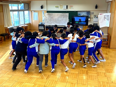 明日の本番に向けて、円陣を組んで、気合いをバッチリ注入しました。