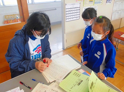 バス旅行のバス席決めです。自分で記入し、先生のチェックを受けます。