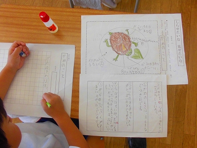 友だちに紹介したいことを、今までの資料をもとに書き上げていきます。
