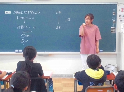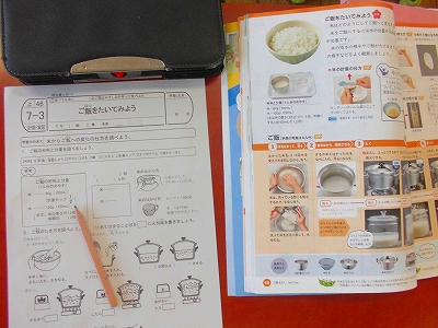 教科書やワークシート、先生の説明で、ご飯の炊き方をマスターします。
