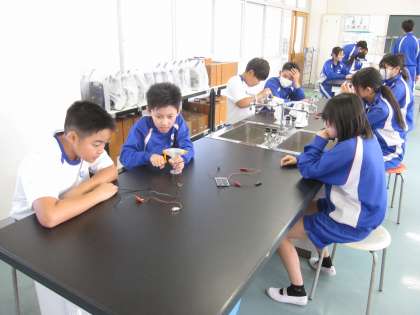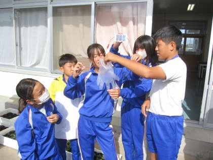 11月5日(火)6年生 理科 その2 公開日 2024/11/06 更新日 2024/11/06 できごと 手回し発電機のハンドルを回す速さや、光電池に当てる光の強さを変えて豆電球のようすを調べました。