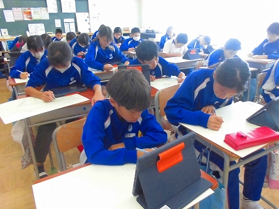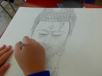 修学旅行の思い出を絵画で表現します。まずは、下書きです。