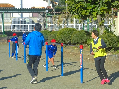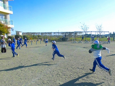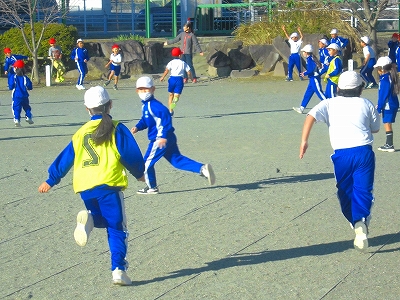 タッチされると、ビブスを受け取り、自分がオニになります。