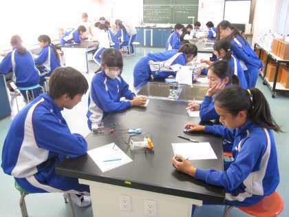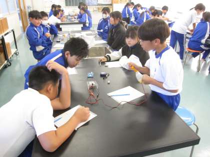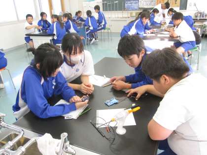 同じ量の電気をためたコンデンサーにつなぎ、明かりがついている時間を調べました。