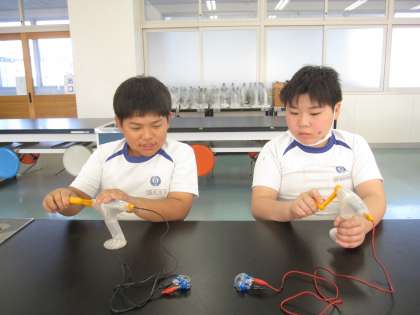 11月12日(火)ひまわり 理科 その1 公開日 2024/11/12 更新日 2024/11/12 できごと 手回し発電機で電気をつくったり、つくった電気をコンデンサーにためたりして実験しました。 電気は、光や音、動き、熱などにかわることがわかりました。