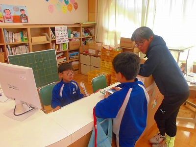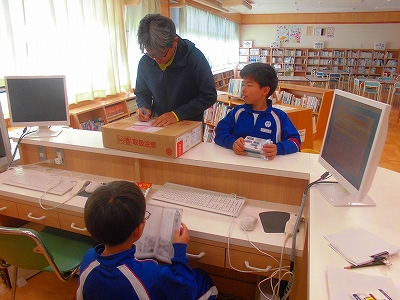 役割分担をしながら、図書室の本を借りていきます。