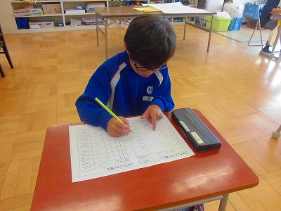 基本的な文字や漢字の練習、計算練習など、朝のルーティーンです。