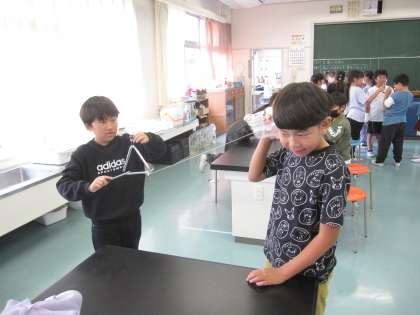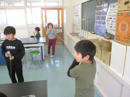 音がつたわるとき、音をつたえる物は、ふるえていることがわかりました。