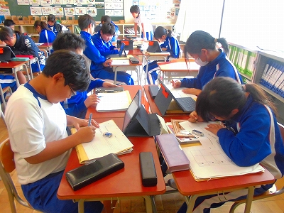 世界で保護しなければならない動物に関して、班ごと英語で作文します。