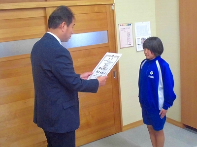 県内のマラソン大会の表彰と、空手の関東大会の表彰です。