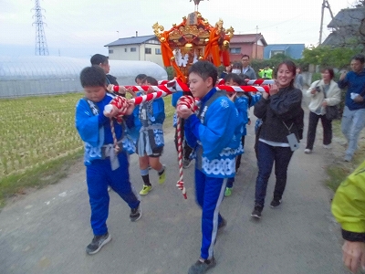 下の宮神社付近を回り、わっしょいのかけ声で上の宮神社を目指します。