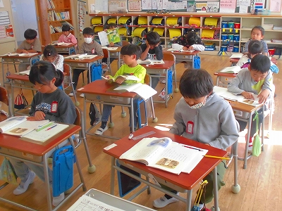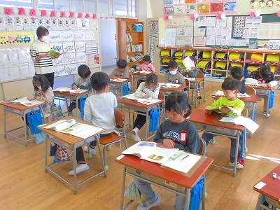 新しい単元です。学習計画を確認し、範読から好きな場面を見つけます。