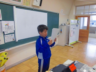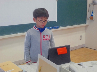 大豆について調べたことを、作成した原稿をもとに堂々と発表します。