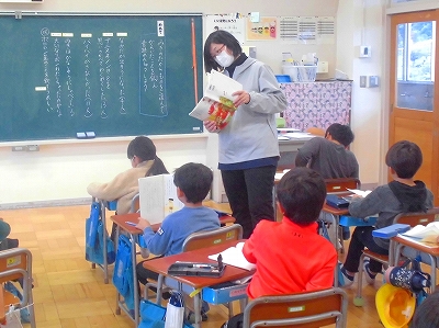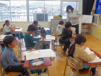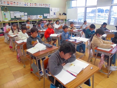 まずは先生の範読に続いて、みんなで大きな声で群読しました。