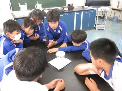 線こうのけむりを使って、あたためられた空気の動きを調べました。