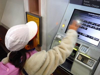 まずは券売機で、子ども料金の切符を購入するところから始まります。