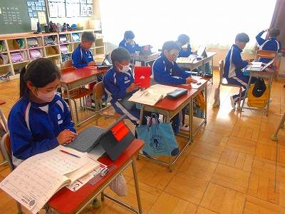 教室や図書室で、自分で決めたテーマについて調べ学習を進めます。