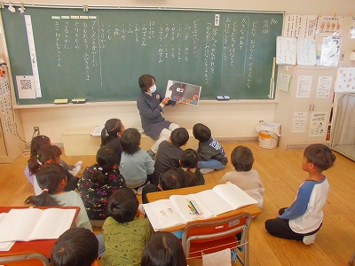 12月3日(火)1年生 国語 その1 公開日 2024/12/03 更新日 2024/12/03 できごと 自分でお話を作り上げるのが大きなめあてです。今回は読み聞かせで、どんな場面で、どんな登場人物が出てくるのか、学習の導入を図ります。