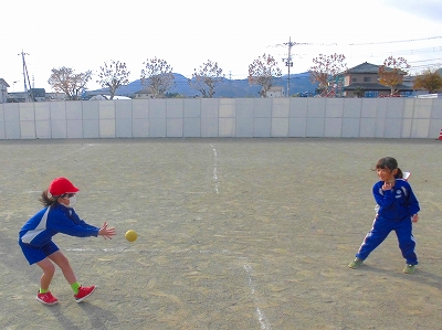 「○○ちゃん行くよ!」と声をかけてから、慣れないボールを投げます。