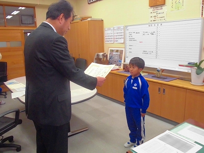 よい歯のコンクール、絵を描く会の表彰は、各クラスで受け取ります。
