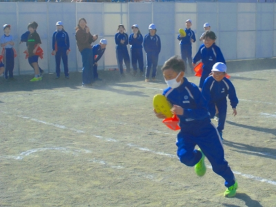 タックルはありませんがボールを持って走る姿はラグビーそのものです。