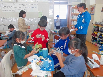 家から持ってきた空き容器が、紙ねんどでパワーアップしていきます。