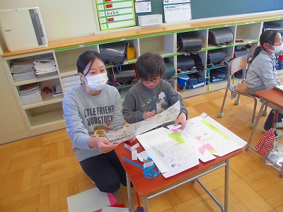交流学級での図工、二人だけの合唱トレーニングのようすです。