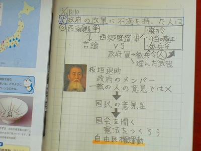 分かりやすい板書です。自由民権運動の理解もバッチリです!