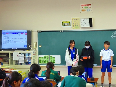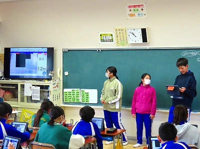 教頭先生による特別授業、校舎の高さを求める、本時はその発表です。